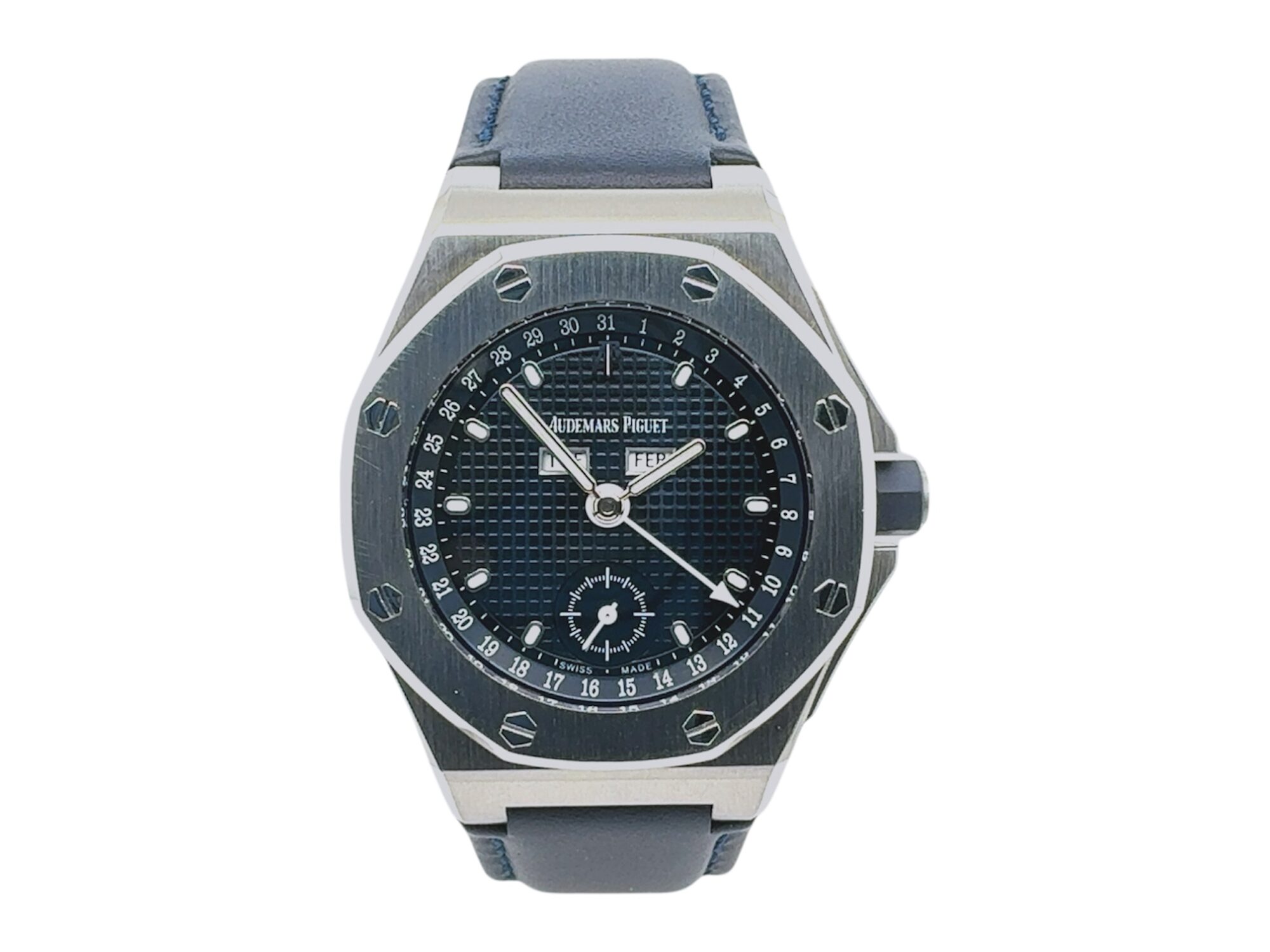 | Bracelet | Blue leather strap with steel deployment clasp |