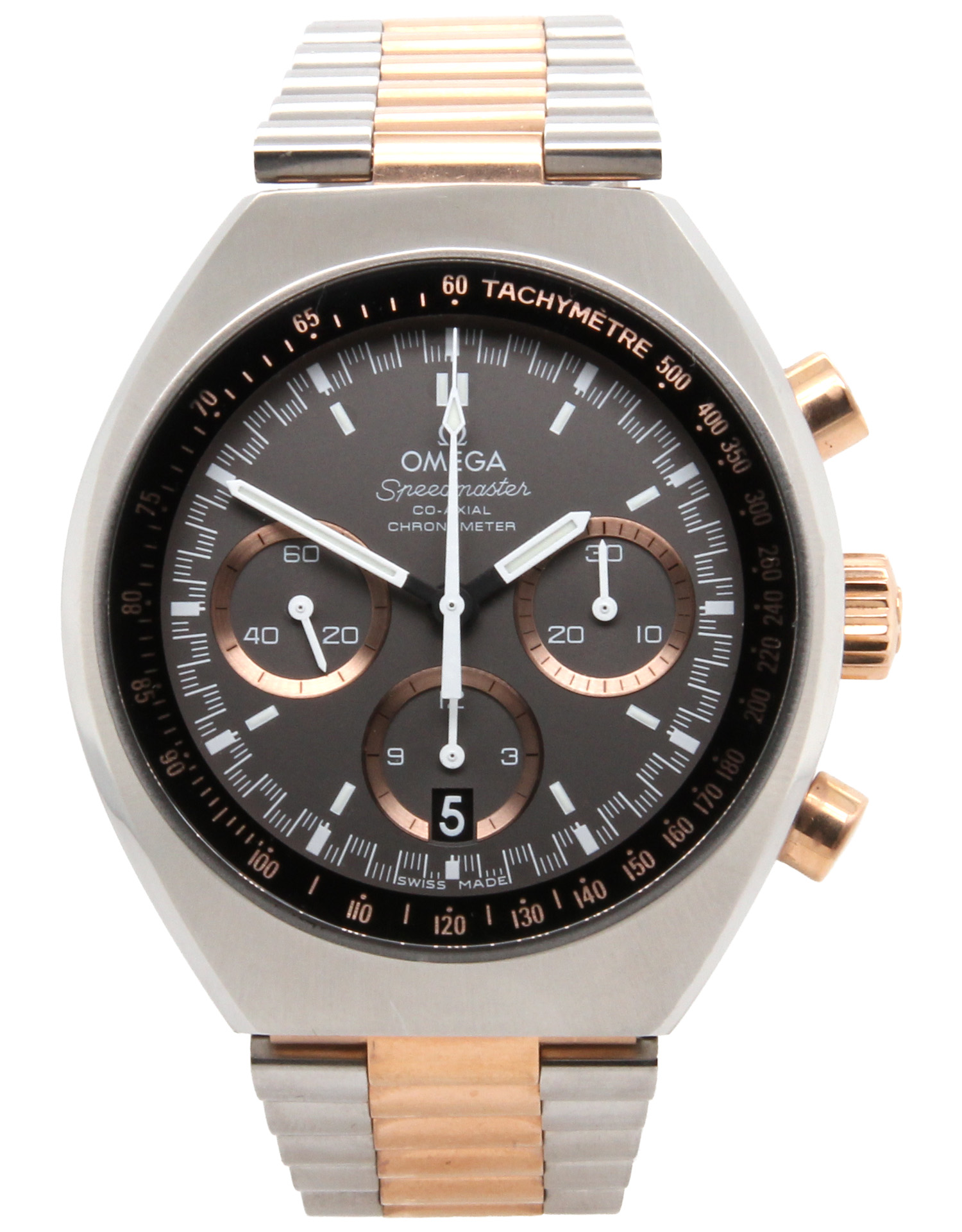 | Bezel | Black and rose tachymetric scale |